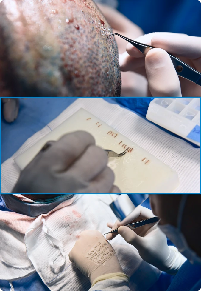 Utilizamos a técnica FUE, menos invasiva, sem cicatriz visível e com recuperação rápida.